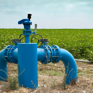 Range of irrigation equipment, pipes, fittings, sprinklers and valves.